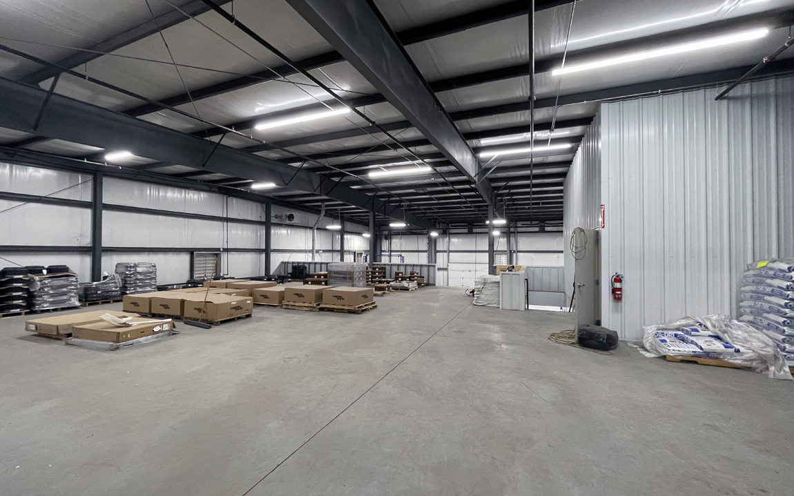| Walls | Office/break room areas: painted drywall | Shop areas: insulated metal |
