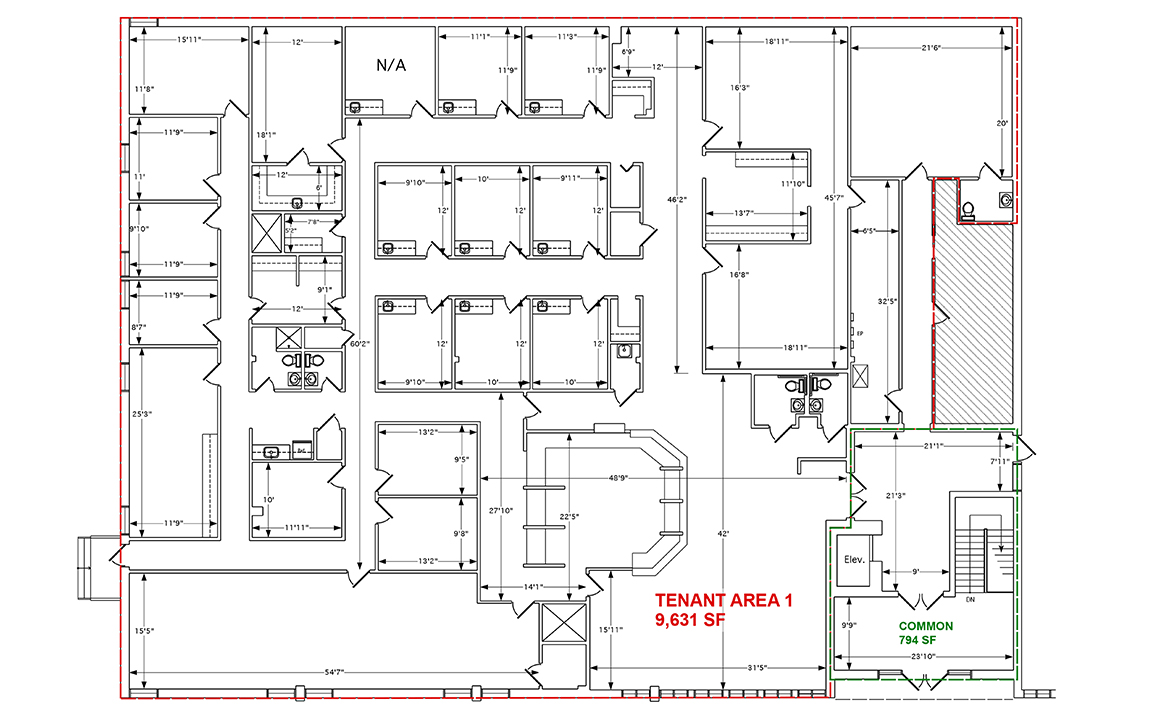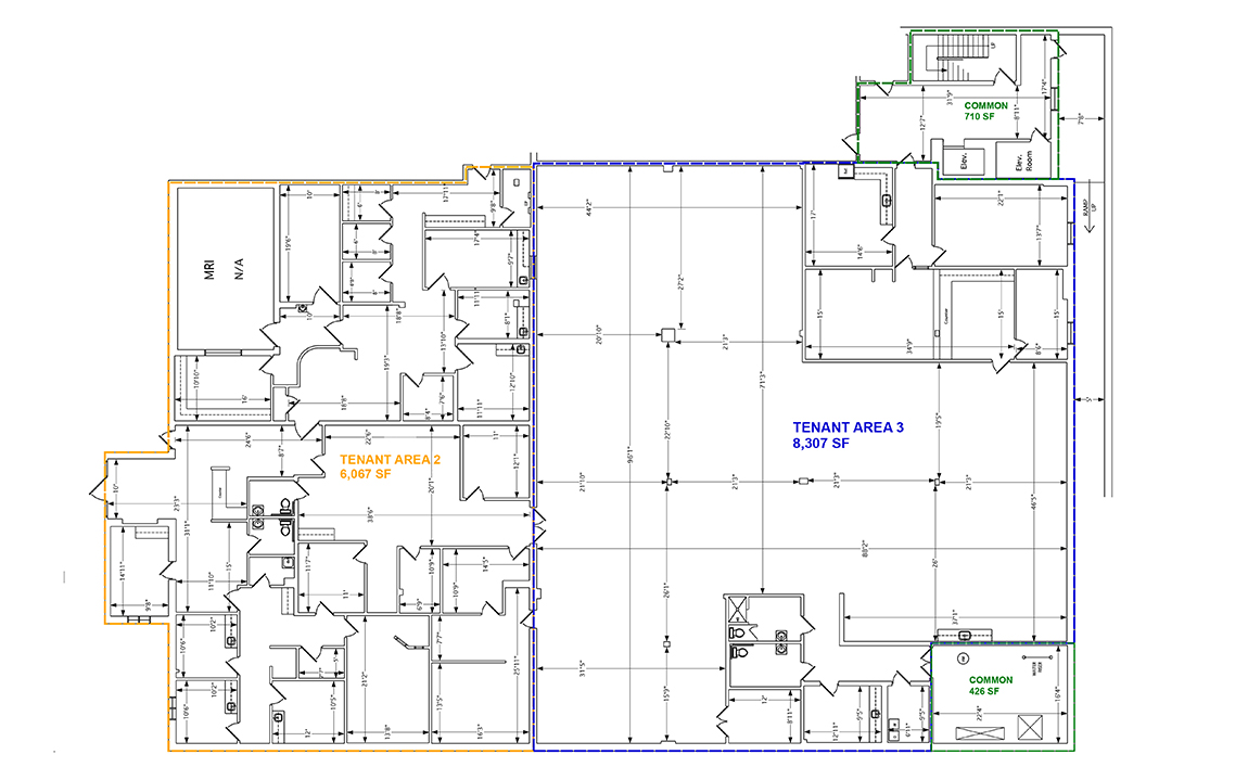 | Additional information | Four suites total: • Area 1 (main level): 10,425+/- SF 9,631 SF office + 794 SF common area • Area 2: 6,067 SF • Area 3: 8,307 SF • Area 4: (in gym suite): 800 SF |