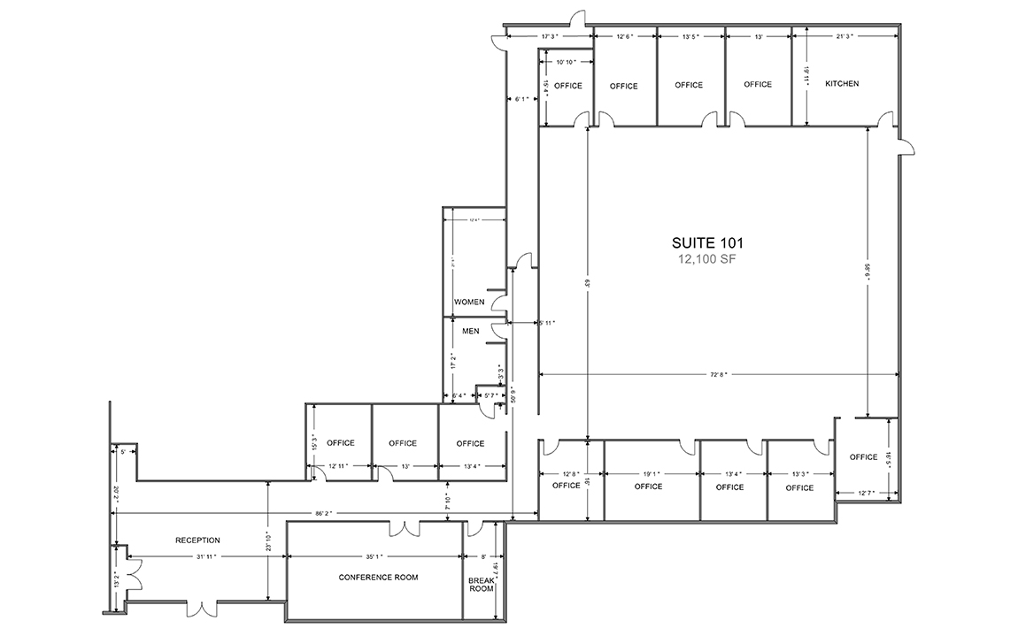 | Additional information | Two suites available: • Suite 101 (12,100 SF) Office suite with private offices and large open area. • Suite 106 (8,350 SF) Office/flex space which could be configured multiple ways. |